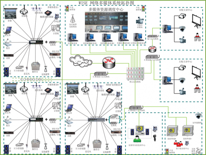 北京萬訊博通科技發(fā)展有限公司有10多年網(wǎng)絡(luò)多媒體教室項(xiàng)目研發(fā)、生產(chǎn)、實(shí)施經(jīng)驗(yàn),積累了眾多的客戶群,通過不間斷的售后服務(wù)數(shù)據(jù)分析,以及與客戶電教部門深入交流,形成了本文所述“多媒體教室網(wǎng)絡(luò)可視化管理系統(tǒng)”方案。